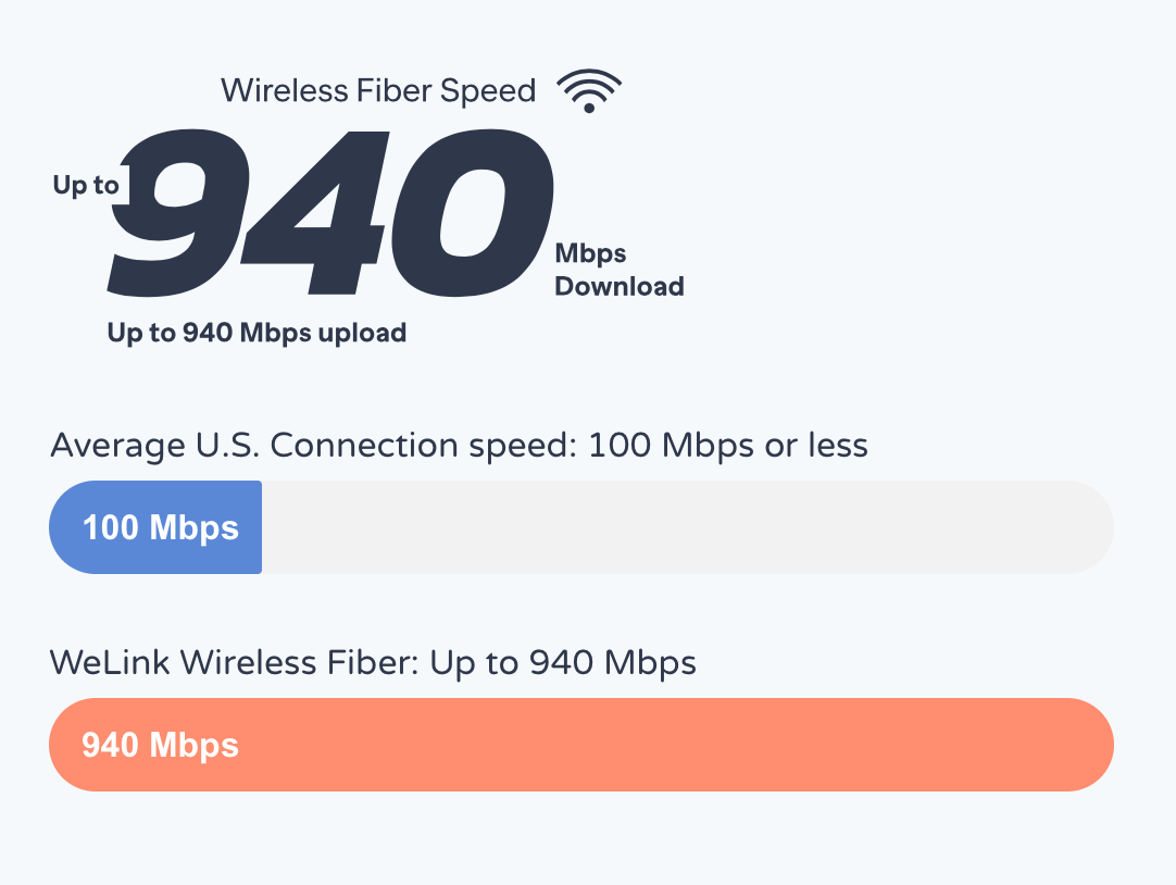 Savings are an estimate only. Total savings are based on comparable gigabit internet offers and an average monthly bill of $110 per month when compared to WeLink’s monthly price after loyalty discount.